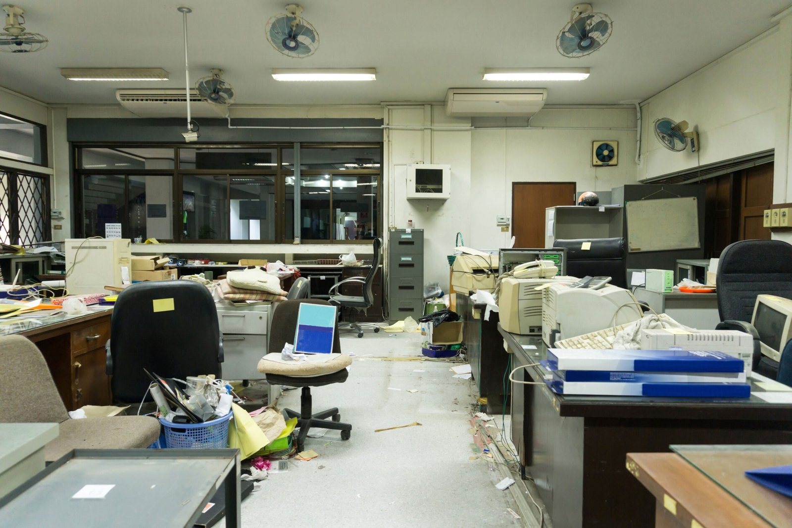 • Furniture & Electronics: Desks, chairs, filing cabinets, computers, printers, monitors, etc.